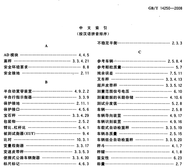 GB/T 14250- 2008 衡器術(shù)語 標(biāo)準(zhǔn)規(guī)范規(guī)定了衡器專業(yè)的術(shù)語及其定義,適用于衡器的標(biāo)準(zhǔn)編寫、書籍出版、文件編制、技術(shù)交流等技術(shù)方面。